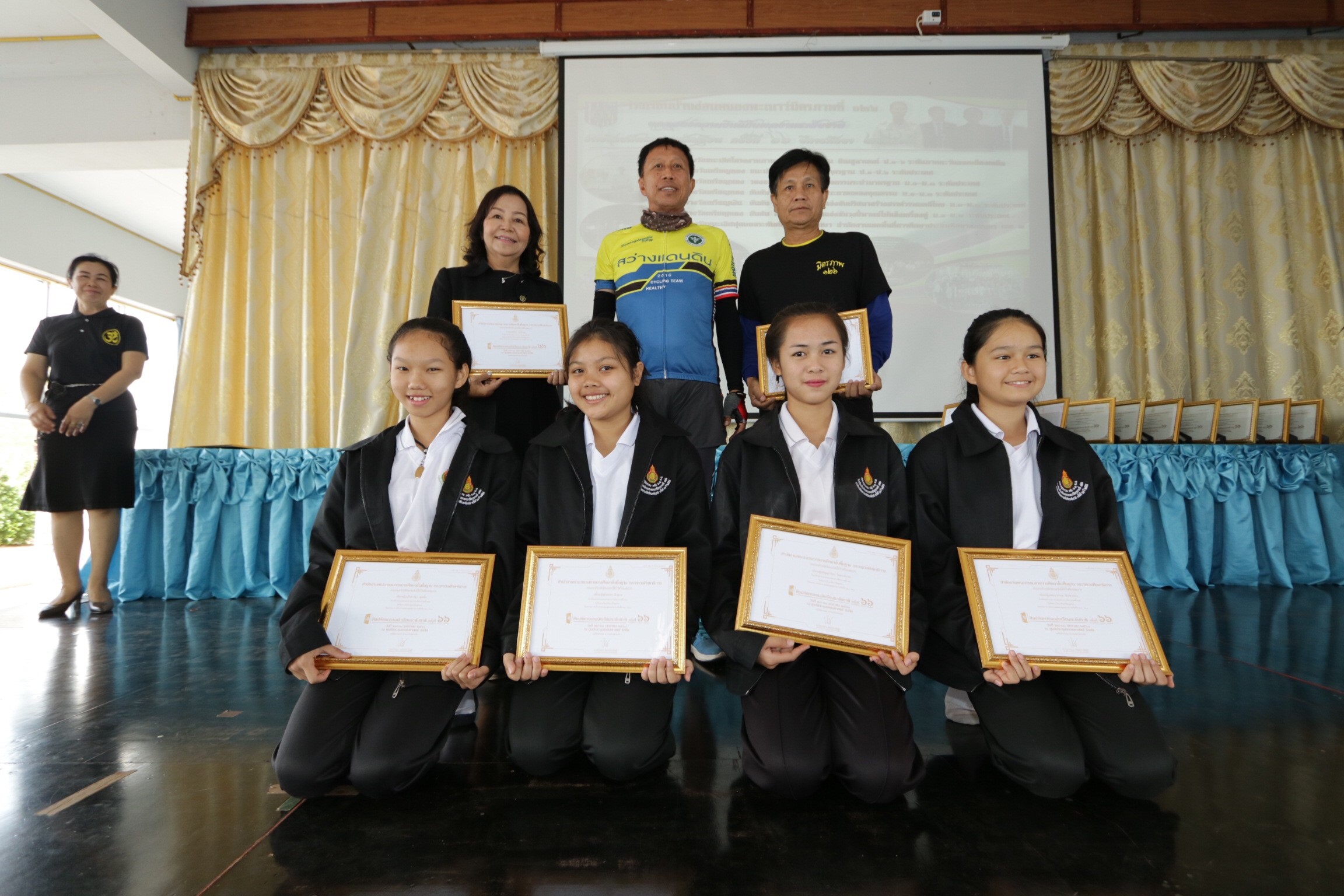 นาย วิวัฒน์ สมานชาติ รองผู้อำนวยการสำนักงานเขตพื้นที่การศึกษาประถมศึกษาสกลนคร เขต 2 ร่วมพิธีมอบเกียรติบัตรให้กับคณะนักเรียน ครูที่นำพานักเรียนเข้าร่วมการแข่งขันงานศิลปหัตถกรรมนักเรียน ระดับชาติ ครั้งที่ 66 ณ มหาวิทยาลัยธรรมศาสตร์ ศูนย์รังสิต โดยมีชมรมนักปั่นจักรยานร่วมแสดงความยินดี โดยปั่นจากจังหวัดอุดรธานี ถึงโรงเรียนบ้านง่อนหนองพะเนาว์มิตรภาพที่ 126 อ.สว่างแดนดิน จ.สกลนคร ที่ได้รับเหรียญทองชนะเลิศในการแข่งขัน นายประทิม โกษาแสง นายอำเภอสว่างแดนดิน ประธานในพิธี