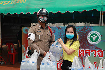 โรงเรียนบานง่อนหนองพะเนาว์มิตรภาพที่ 126 นำโดยท่านผู้อำนวยการโรงเรียน นายแกล้วกล้า ประชานันท์ พร้อมกับคณะครูส่วนหนึ่ง นำน้ำดื่มไปมอบ เป็นกำลังใจให้กับเจ้าหน้าที่ จุดตรวจควบคุมโรคระบาด Covid 19 ช่วงเข้าวันที่ 2 เมษายน 2563