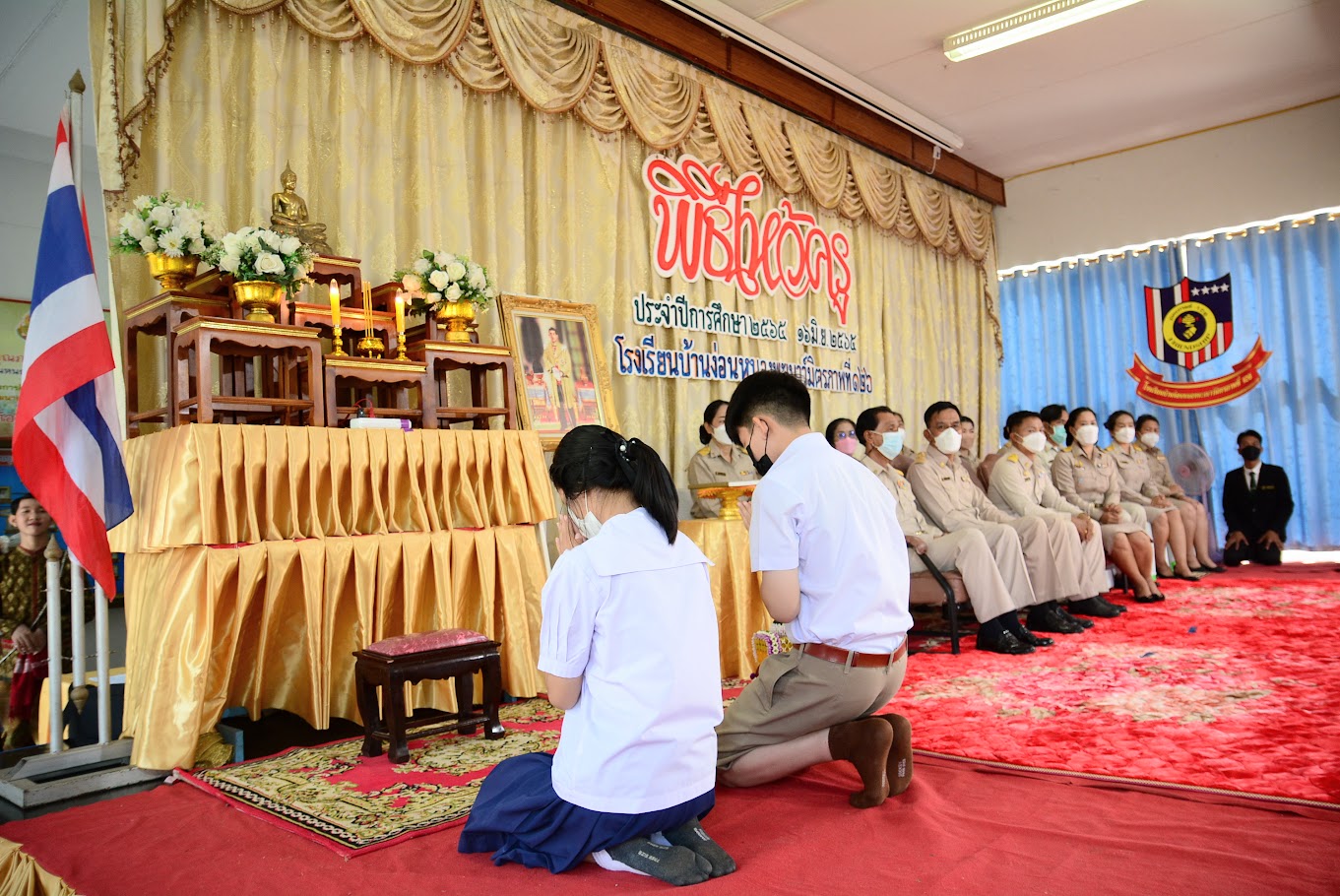 กิจกรรมในวันไหว้ครูฝ่าย ม.ต้น ปีการศึกษา 2565เขียนโดย Super User | พิมพ์ | อีเมล | ฮิต: 725นายแกล้วกล้า ประชานันท์ ผู้อำนวยการโรงเรียนบ้านง่อนหนองพะเนาว์มิตรภาพที่ 126 เป็นประธานในพิธีไหว้ครูประจำปีการศึกษา 2565 ในวันที่ 16 มิถุนายน 2565 ณ ห้องประชุมจตุพิทย์ โรงเรียนบ้านง่อนหนองพะเนาว์มิตรภาพที่ 126 ฝ่าย ม.ต้น ดูภาพกิจกรรมทั้งหมด ก่อนหน้า ต่อไป