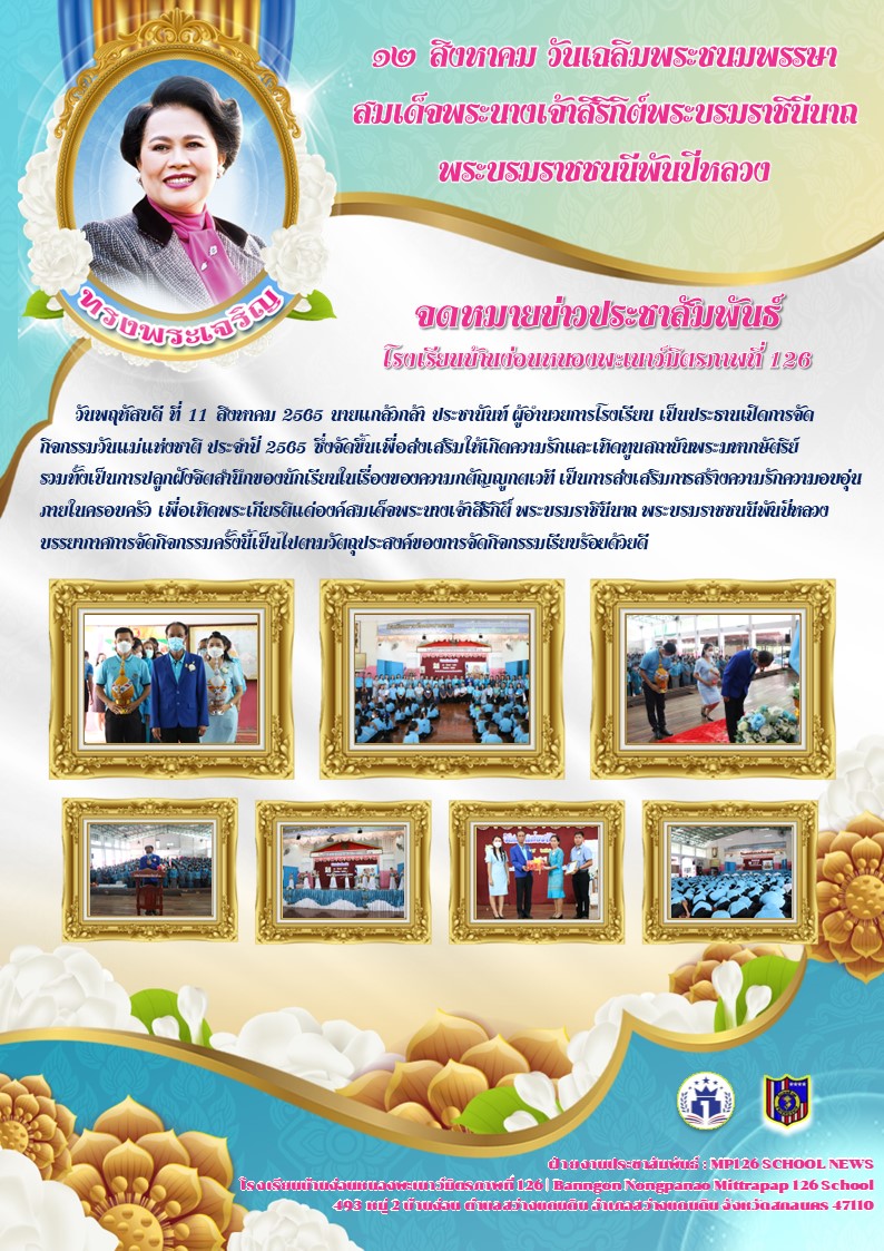 วันพฤหัสบดี ที่ 11 สิงหาคม 2565 นายแกล้วกล้า ประชานันท์ ผู้อำนวยการโรงเรียน เป็นประธานเปิดการจัดกิจกรรมวันแม่แห่งชาติ ประจำปี 2565 ซึ่งจัดขึ้นเพื่อส่งเสริมให้เกิดความรักและเทิดทูนสถาบันพระมหากษัตริย์ รวมทั้งเป็นการปลูกฝังจิตสำนึกของนักเรียนในเรื่องของความกตัญญูกตเวที เป็นการส่งเสริมการสร้างความรักความอบอุ่นภายในครอบครัว เพื่อเทิดพระเกียรติแด่องค์สมเด็จพระนางเจ้าสิริกิติ์ พระบรมราชินีนาถ พระบรมราชชนนีพันปีหลวง บรรยากาศการจัดกิจกรรมครั้งนี้เป็นไปตามวัตถุประสงค์ของการจัดกิจกรรมเรียบร้อยด้วยดี