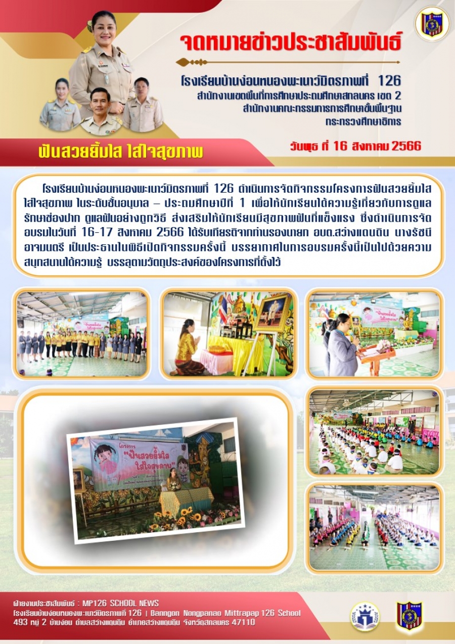 ฟันสวยยิ้มใส ใส่ใจสุขภาพ 2566 Written by เสด็จ แก้วแสนเมือง font size decrease font size increase font size Print Email Rate this item 1 2 3 4 5 (0 votes) Additional Info ชื่อกิจกรรม: ฟันสวยยิ้มใส ใส่ใจสุขภาพ 2566 วัน เวลา: 16-17 สิงหาคม 2566 ดูภาพทั้งหมด: ฟันสวยยิ้มใส ใส่ใจสุขภาพ 2566 Read 486 times Tweet Published in คลังรูปภาพ(ฝ่ายประถมฯ) เสด็จ แก้วแสนเมือง Latest from เสด็จ แก้วแสนเมือง นิเทศ ติดตามและประเมินผลการเตรียมความพร้อมเปิดเรียน ภาคเรียนที่ 2-2568 พิธีมอบเกียรติบัตรครูแดร์ ปีการศึกษา 2568 โครงการสร้างผลงานด้วย Canva นิเทศภายใน ตรวจเยี่ยมชั้นเรียน ภาคเรียนที่ 1 ปีการศึกษา 2568 กิจกรรมค่ายวิชาการ ปีการศึกษา 2568 More in this category: « กิจกรรมวันแม่แห่งชาติ 2566 กิจกรรมวันวิทยาศาสตร์แห่งชาติ ประจำปีการศึกษา 2566 » back to top
